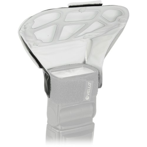 The Light Bouncer Plus for Portable Flashes from Vello delivers high quality light in situations where you're shooting in a room with a light ceiling that can be used for bouncing the light from your portable flash. With the Light Bouncer Plus, 20% of the light output is reflected by the reflector, and 80% passes through to be reflected off the ceiling. This spreads the light out, with a majority coming from above, but without the heavy shadows in a subject's eye sockets typical of 100% top light. This will produce a much more flattering light than just bouncing light off the ceiling.